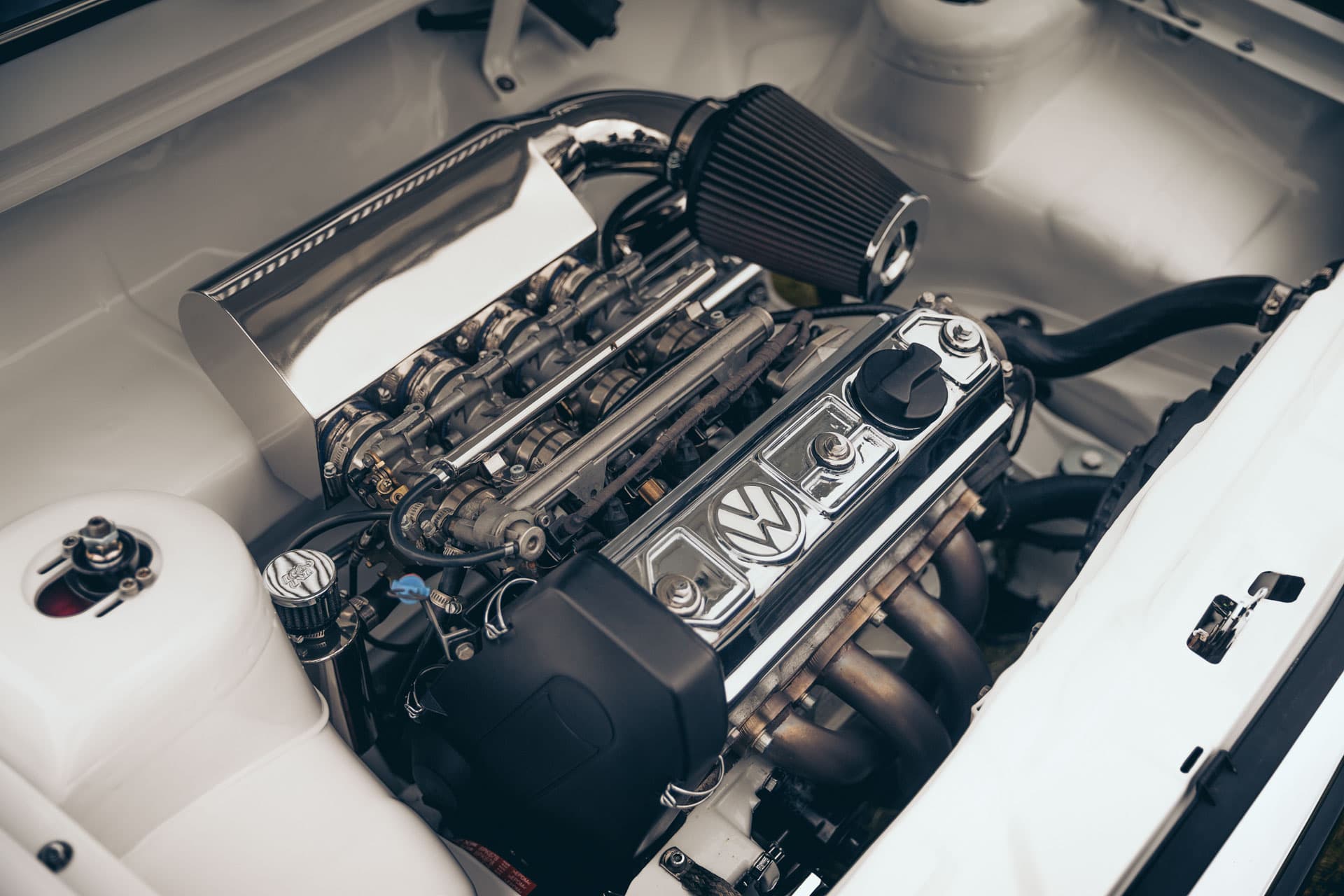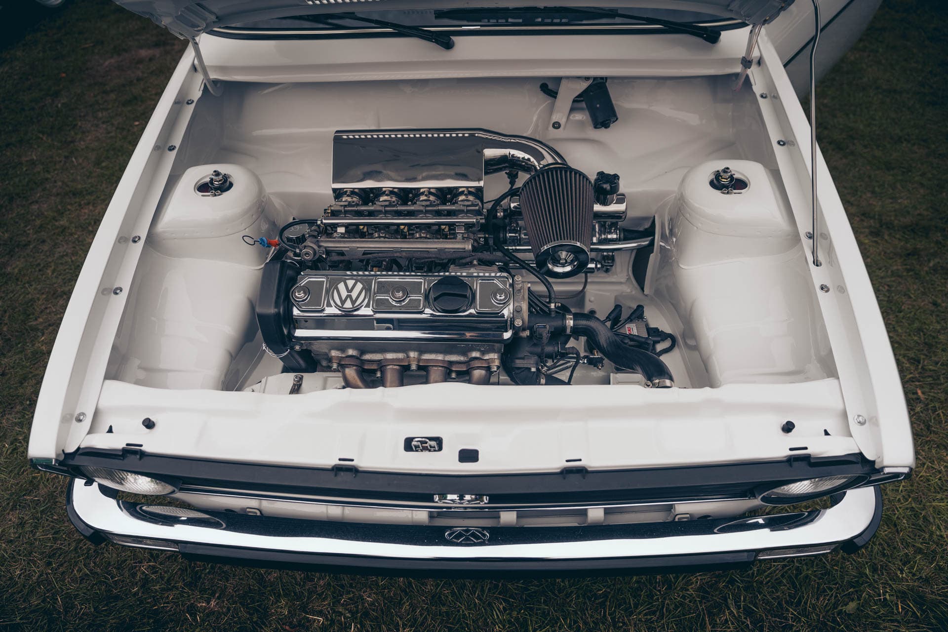 The MK1 Polo Derby is very similar to the MK1 Golf, so he was able to adapt the Air Lift Performance VW MK1 Golf threaded body air suspension kit to suit his build. To keep the fully painted and polished underside of the car in show-winning condition, the owner opted for Air Lift Performance’s AutoPilot V2 air management system.