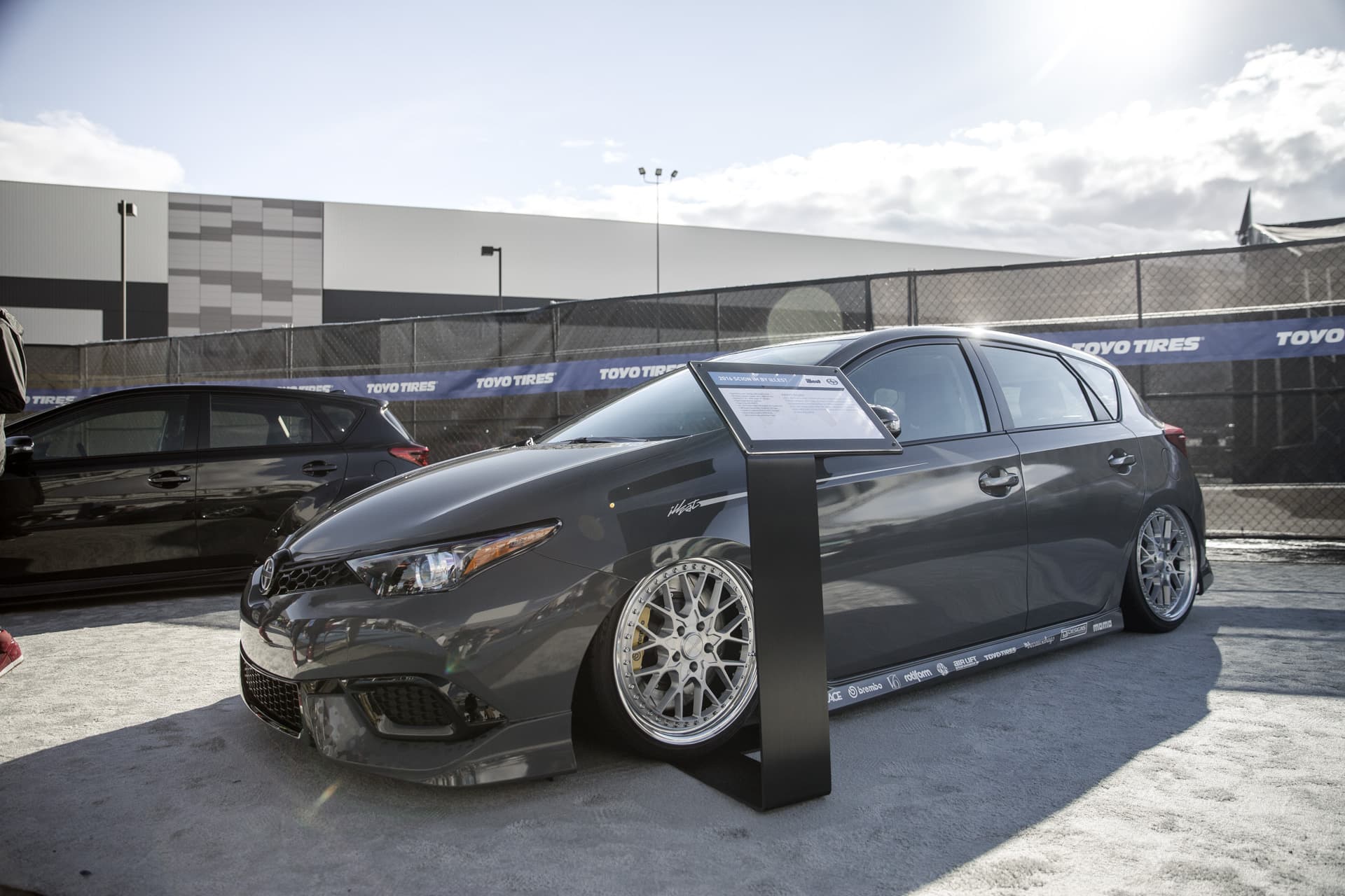 Foregoing the trend for widened bodywork, the Scion iM design could be appreciated as it sat low on Air Lift Performance 3H and one off Rotiform wheels.